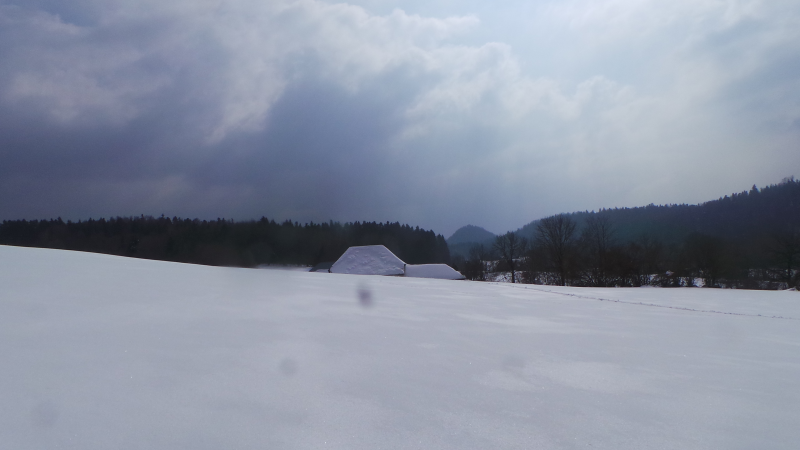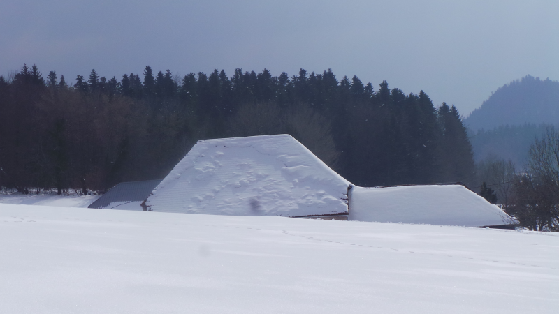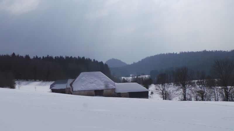 Le modèle se trouve en photo ci-dessus, elle a été prise le 11 mars 2016 lors d'une randonnée depuis le Col de Belle Roche qui surplombe la Combe de la Chandeleuse, un passage vers la Grange Méjat au dessus de la Grange du Mortier, Une traversée par la forêt des Moussières permet de rejoindre enfin la Combe de Léchaud.