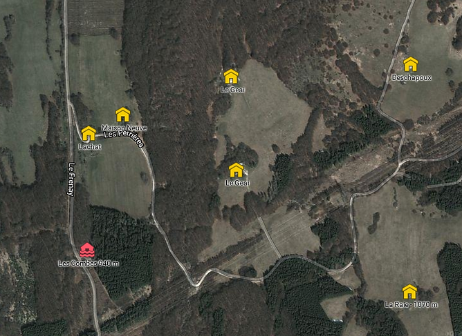 La ferme des Combes, aujourd'hui disparue, se situait au bord de la route qui mène de Neufontaine à Hotonnes, au sud de Lachat
