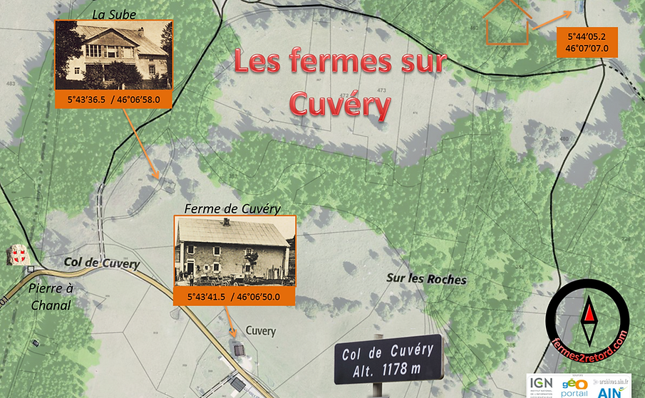 Cette ferme qui a brulé pendant la dernière guerre se situait sur la partie ouest de Cuvéry au nord de la ferme de secours du même nom et à l'ouest de la ferme des Frasses, elle faisait partie des Granges de Cuvéry (C2) comme on peut le voir sur la carte ci-dessous.